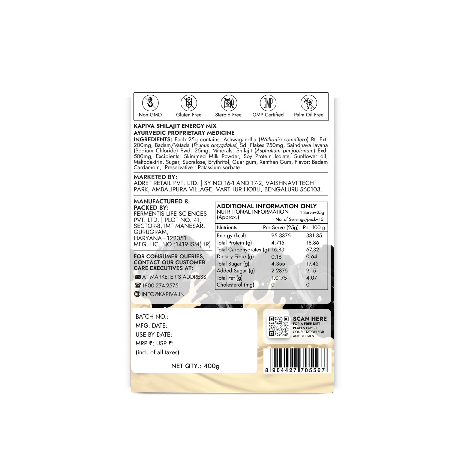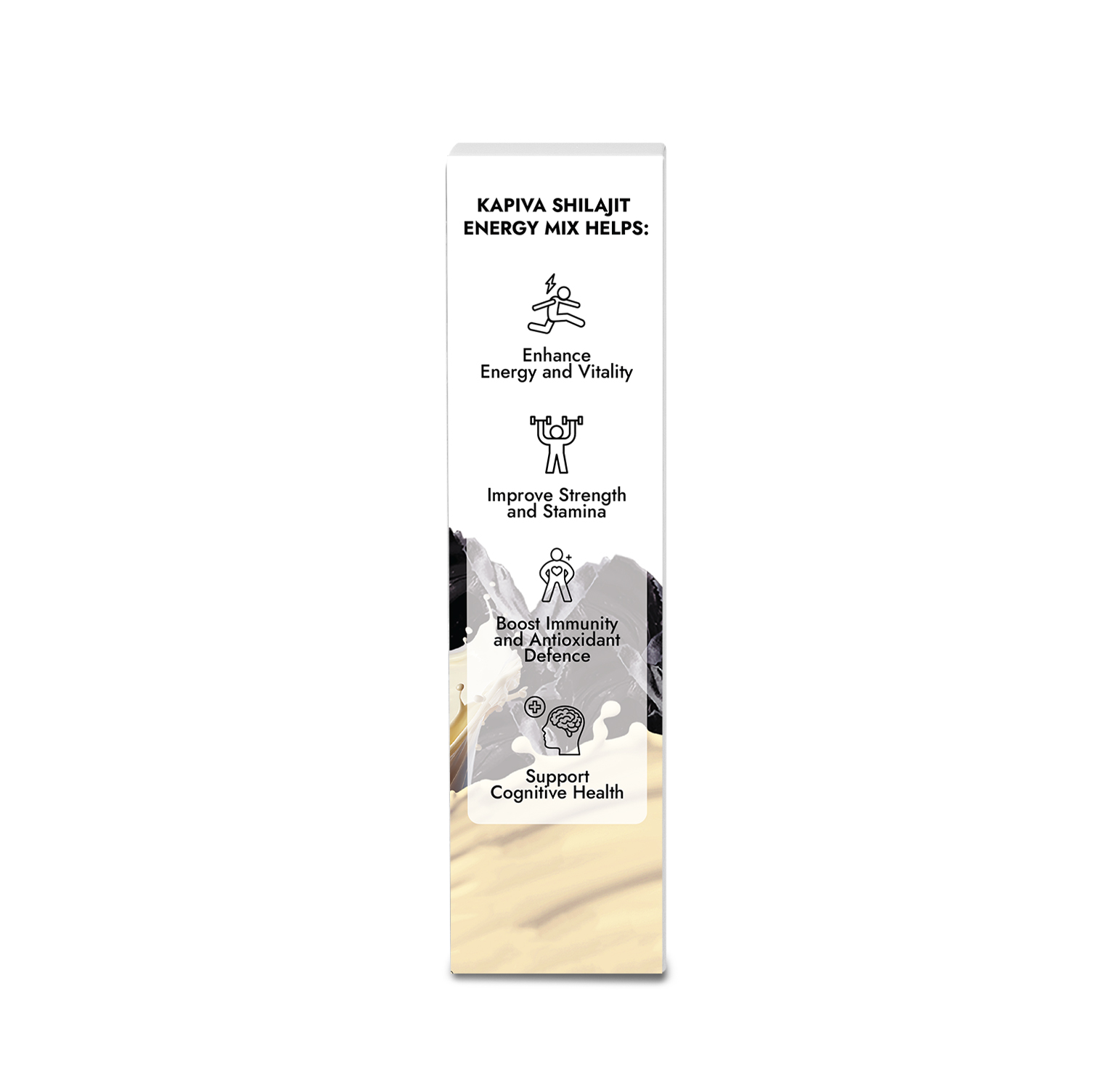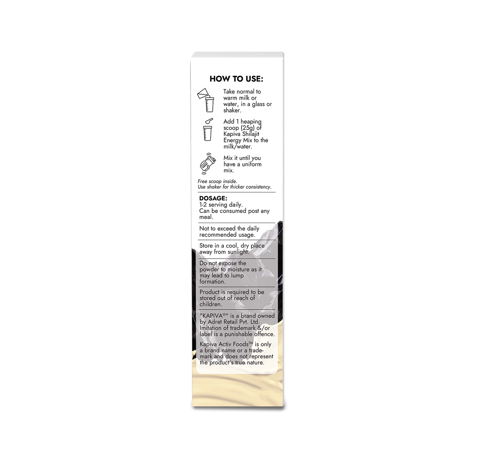 Kapiva Shilajit Energy Mix in Badam flavour is your daily dose of all-day energy. It is blended with Ashwagandha and protein-rich milk powder, and topped with almond slices, this mix improves energy and stamina, reduces stress, and promotes restful sleep—with every sip.