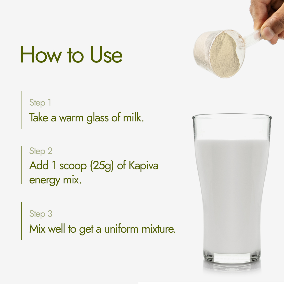 Mix 1 heaping scoop (approx. 25g) with a glass of warm milk